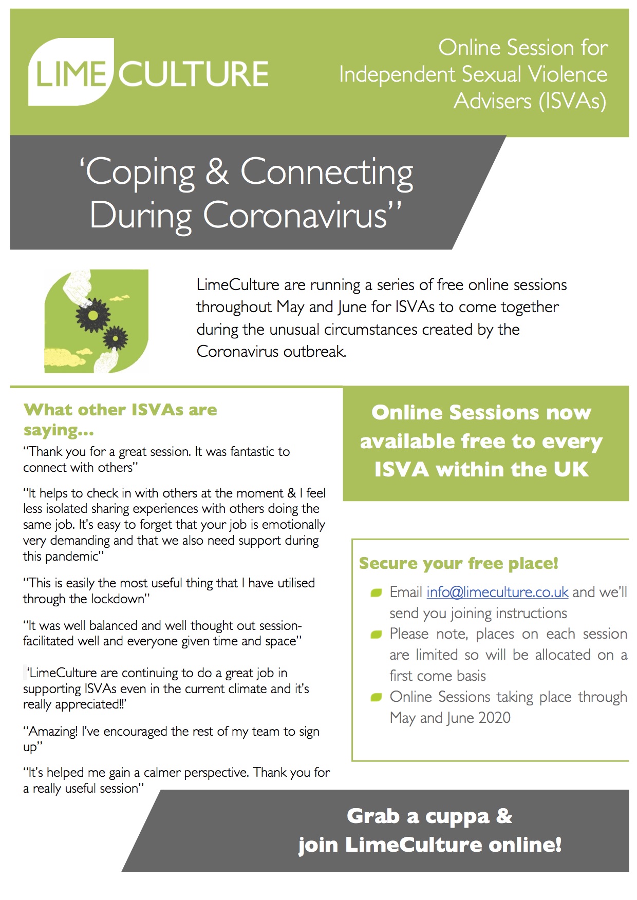 During the last 10 years, we have met and worked with some incredible professionals, services and organisations. We have also had the honour of meeting some of the most inspirational people there are. Some of these people have been victims/survivors of the most abhorrent crimes imaginable and others have been the professionals who work tirelessly to support them, often in very challenging circumstances. It is them who inspire us to work hard to raise the standards and support a professional response to sexual violence and safeguarding. Our work is important – and it means a lot to us at LimeCulture to work towards making things better.